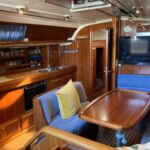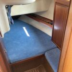 Båden har 3 kahytter og er indrettet med Skippers cabin i stævnen med dobbeltseng, god skabsplads og eget toilet. Agter er der 2 separate cabins, begge med dobbeltseng og meget skabsplads og 2 vinduer/luger til udluftning. I salonen er der en stor u-sofa og langsgående stort pantry med 2 vaske, komfur og stort køleskab. Agter i salonen finder man desuden bådens 2. toilet.