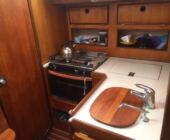 | Safety equipment | Lifejacket for each crewmember, 4 Safety harnesses, life raft ,2 horseshoes with line, one with, light, heaving line, 6 parachute rockets, 6 handflares, foghorn, radarreflector, 2 fire extinguishers, anchor ball, motorcone, sea anchor, signal lamp, bilgepumps, tool kit, instruction manuals, fire blanket, flags. |